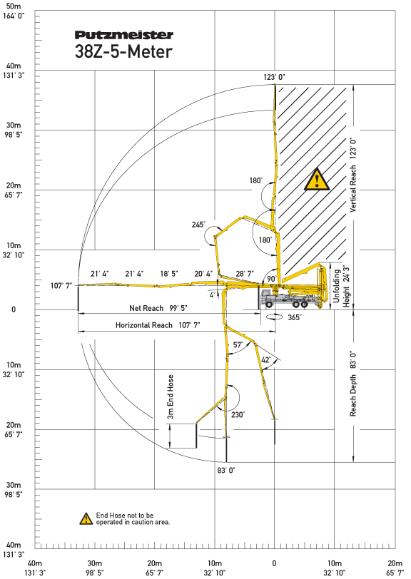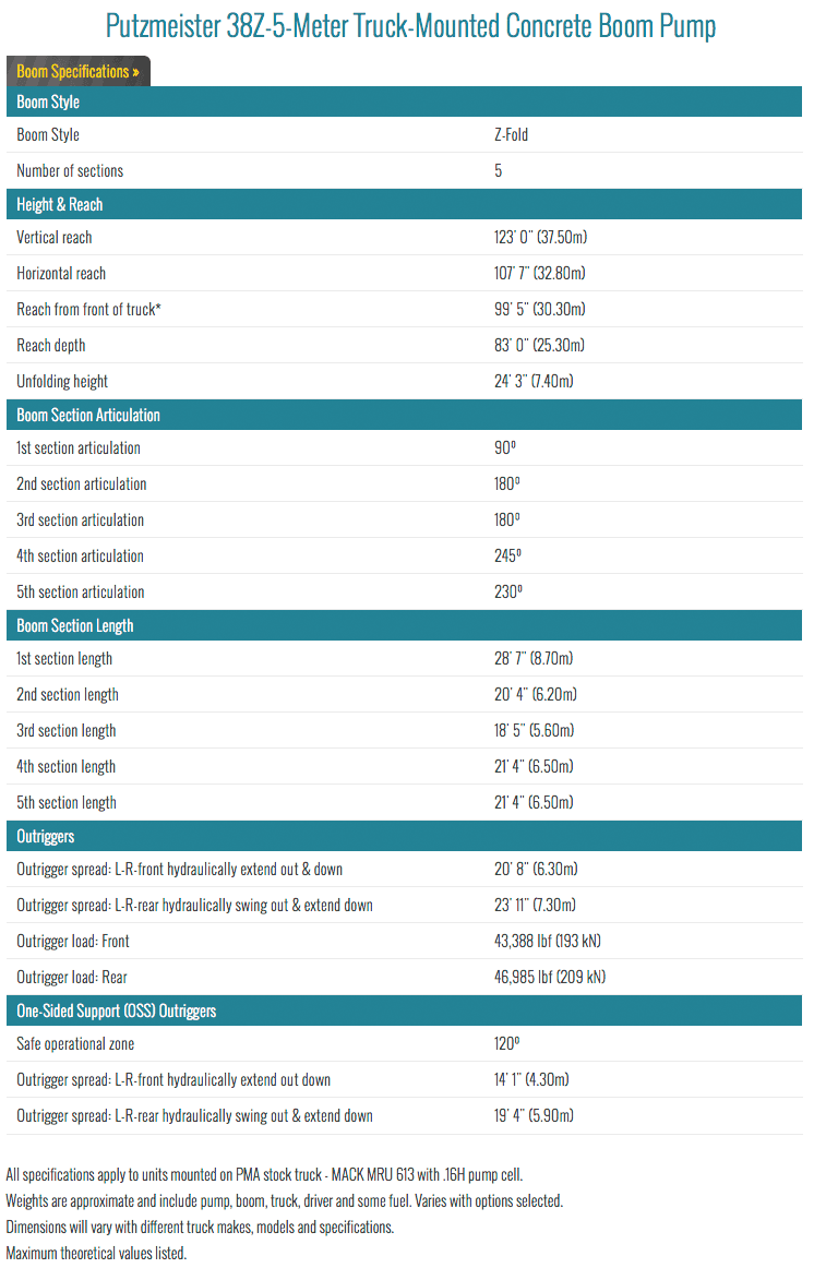Putzmeister’s innovative 38Z-5-Meter features a completely brand new design for its five-section boom arm and pedestal for increased maneuverability, a reduced boom unfolding height, reduced overall weight, and a more user-friendly design. With the easy addition of a tag axle, the unit becomes frost-law-compliant to meet your job site needs year-round.