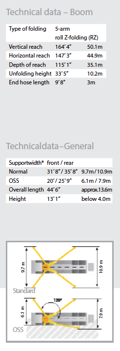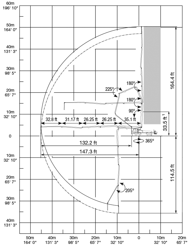 | Horizontal reach | 147′ 3″ | 44.9m |