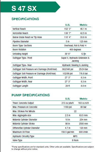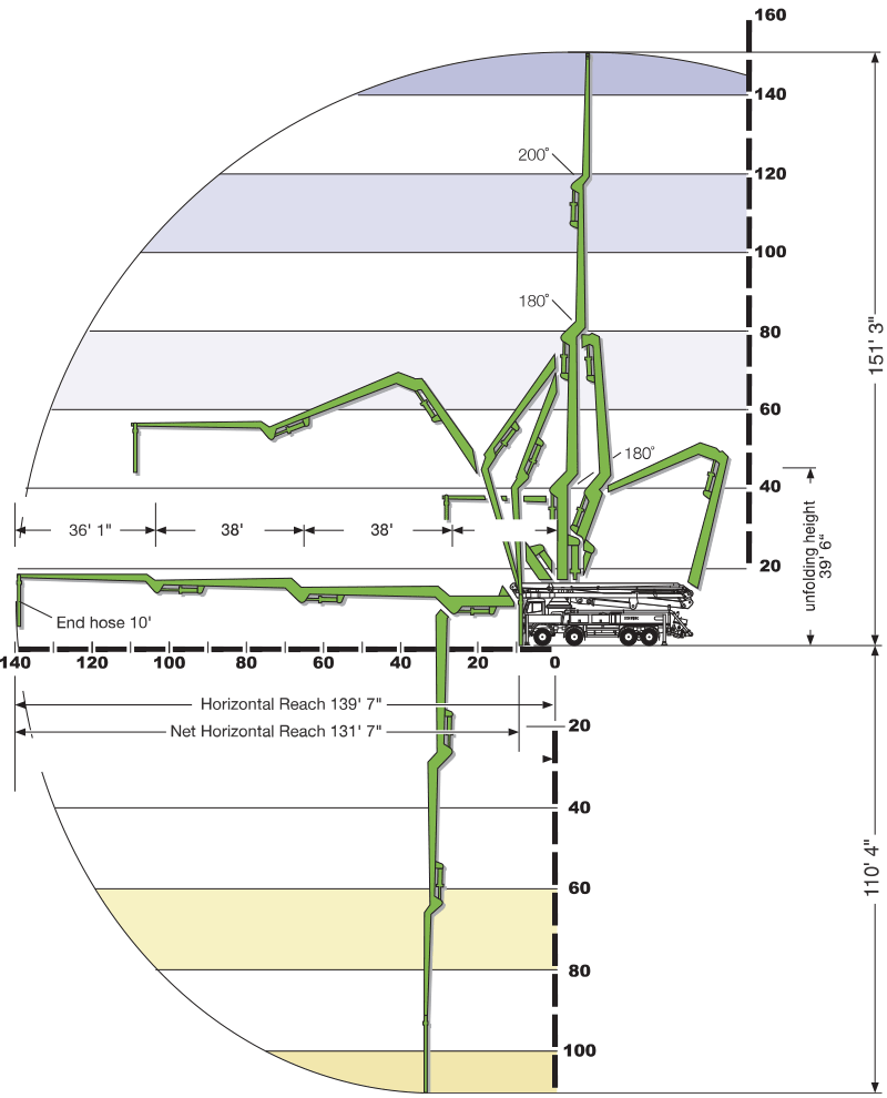 September 13, 2024 in Concrete Pumps Schwing 47SX Concrete Pump Blanchet Concrete Pumping 0 Like Post Truck-Mounted Concrete Pump with 4-section placing boom with a 131′ 7″ net horizontal reach. Specifications Range Diagram Outrigger Spread